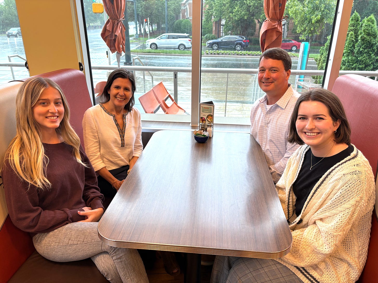 Team Ledger meets for breakfast in SouthPark. From L to R: Director of business development Ava Mikeal, managing editor Cristina Bolling, executive editor Tony Mecia, staff writer Lindsey Banks.